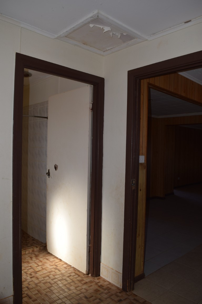 The home is tiled throughout. Foam ceilings (quite stained) in bedrooms, living and dining areas.