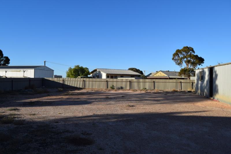 A couple established gum trees, front and side, plus the remnants of a water tank stand in the back yard.
