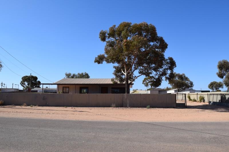 Bitumen road past the home, located on a busier street in Coober Pedy with a couple businesses (childcare centre / social club) and mainly residential.