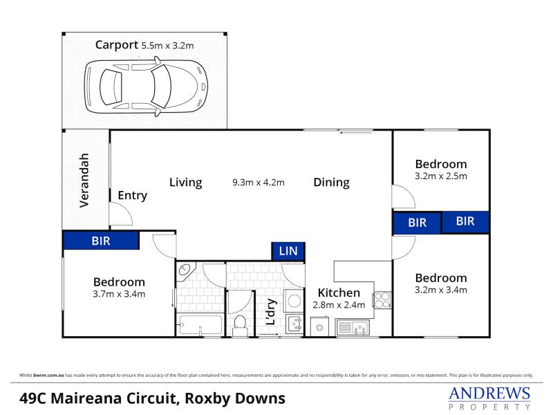 Set on approximately 389sqm, the home features three generously sized bedrooms, all with built-in wardrobes for excellent storage. The two-way bathroom is conveniently accessible from the main bedroom, with a separate toilet and additional access via the laundry.